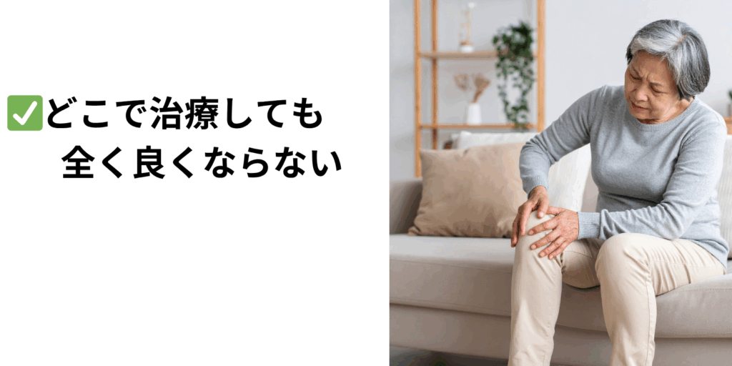 5年前から膝痛で正座や階段の上り下りが辛く、整形外科で半月板損傷と診断され、ヒアルロン酸、針、整骨院と色々行きましたが良くならず、ネットで見つけて来ました。