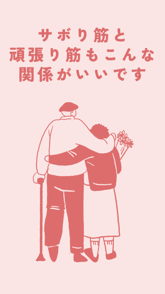 最終的には働かなくなったサボり筋が正常に働けば、頑張り筋の負担が減りどんどん回復していき痛みは無くなりますマッサージや湿布、注射をやり続けても全く良くなりません。