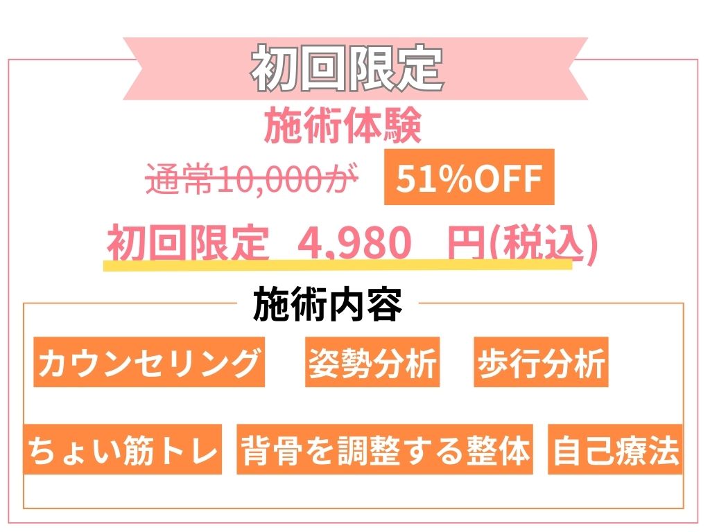 整体と言ってもゴリゴリやボキボキの怖いのではなく、背骨を優しく揺らすだけの心地いい施術です。